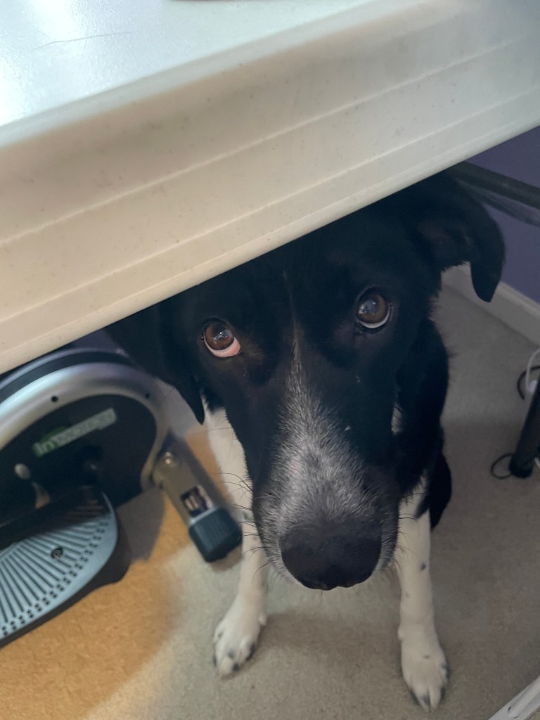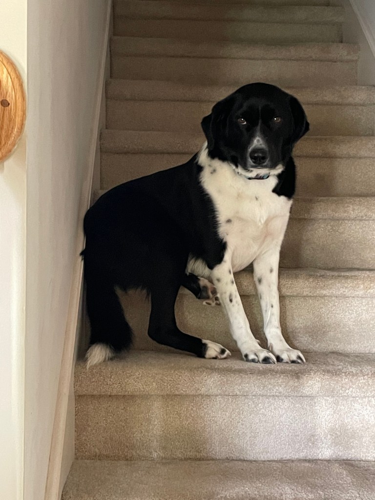 His DNA (yes, we took a swab) shows he has a significant amount of an Australian shepherd in him. He is constantly on the go and tries to herd us. Saying we are overwhelmed is an understatement.